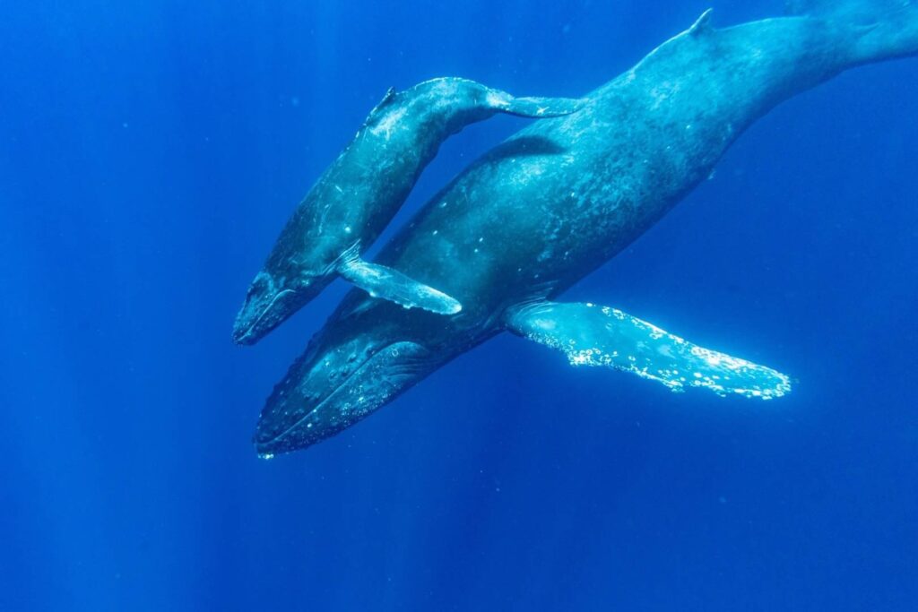 海の中で泳ぐクジラは大きくて優雅な姿です♪