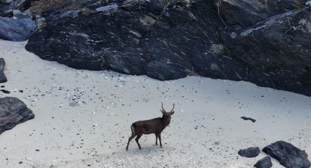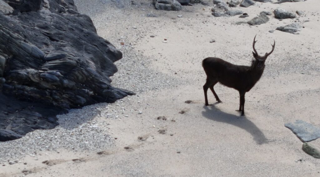 ケラマにはヤギもたくさんいるので黒ヤギさんかなと観察していたら、なんとシカ🦌さんでした👀!!!