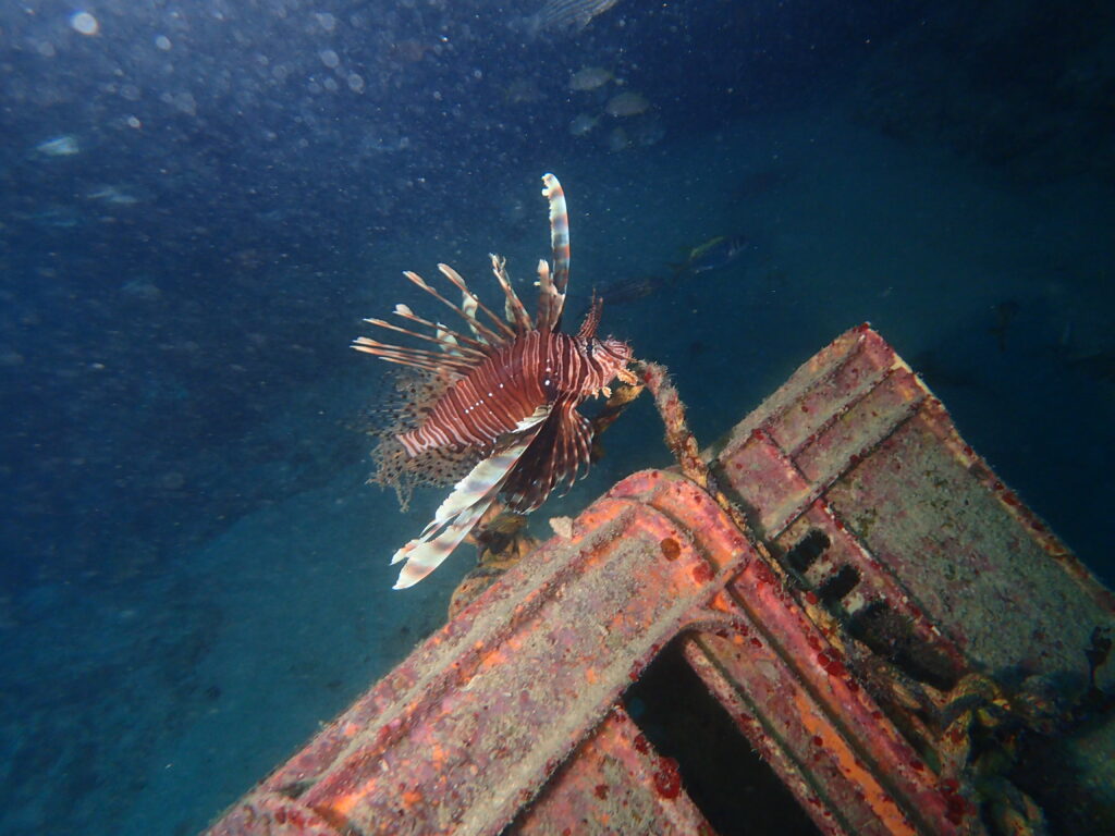 奥武島の海中熟成酒のカゴにまるで守ってるかのように陣取っているハナミノカサゴ🥰