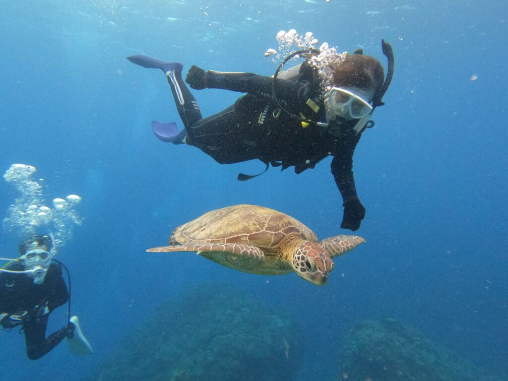 最近、人懐っこいアオウミガメがいまして、本日も同じウミガメなのか、、、、