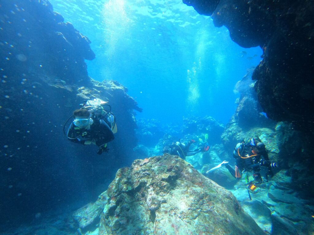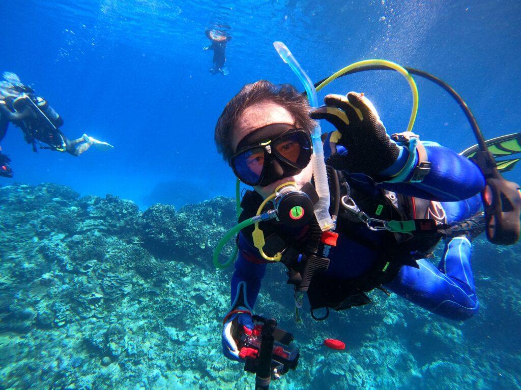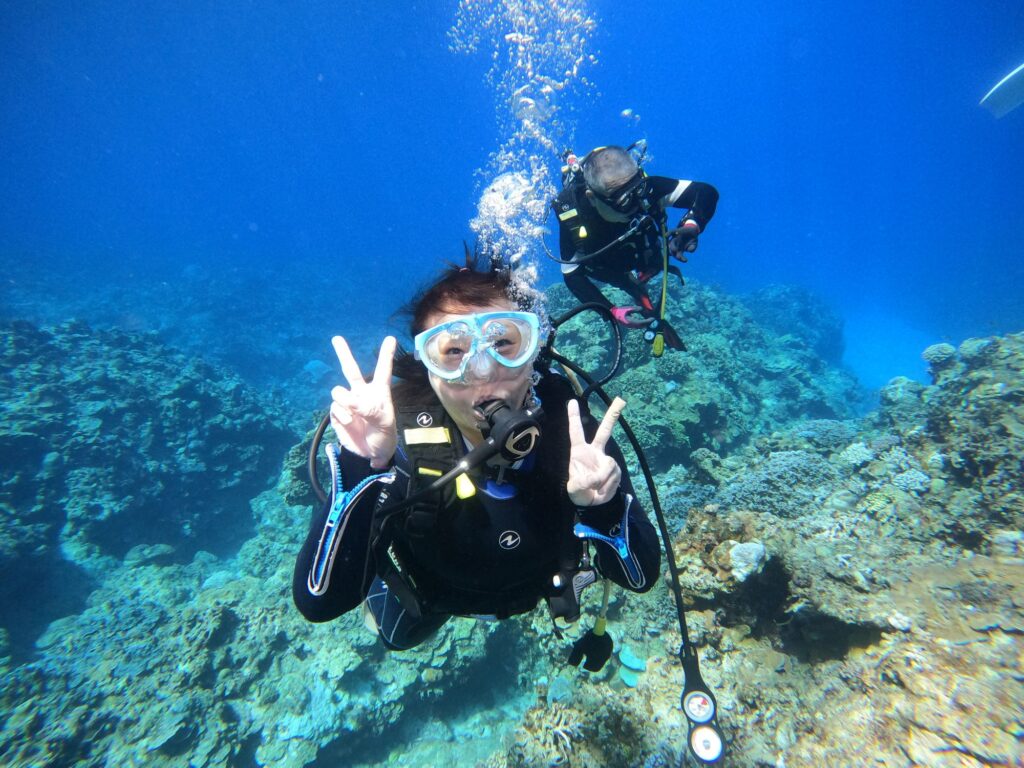 アドバンス講習2日目のお客様とダイバーやシュノーケリングの皆さまと