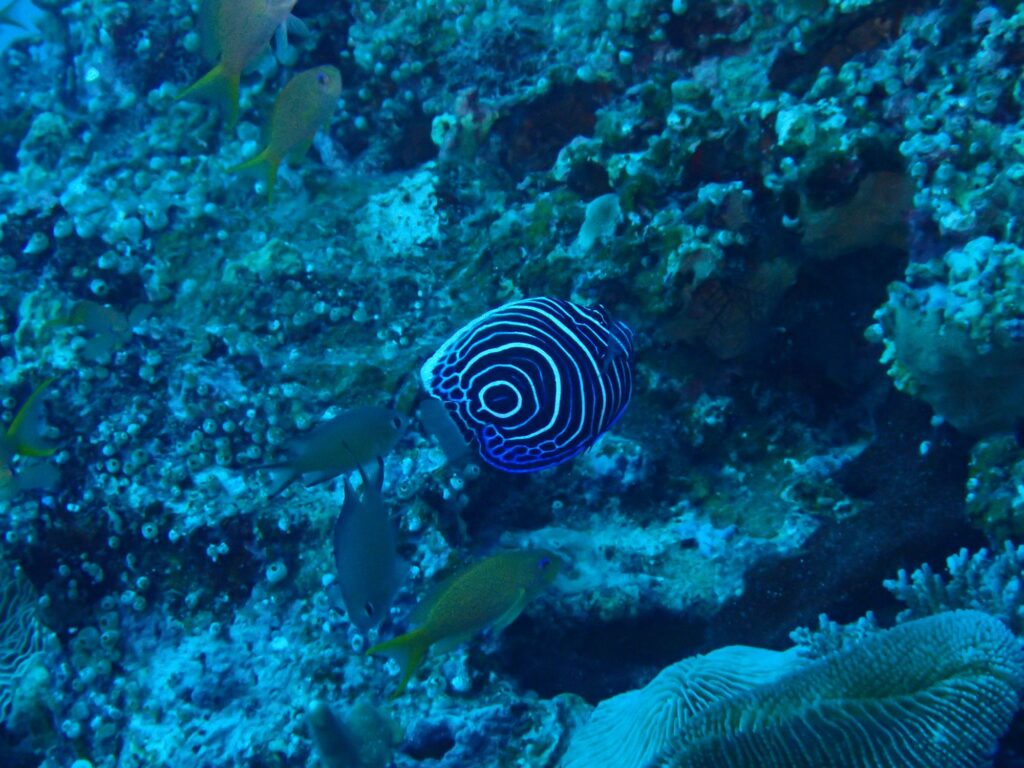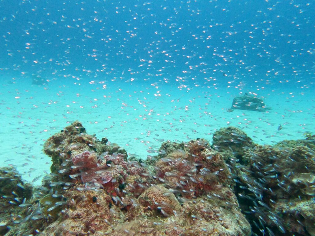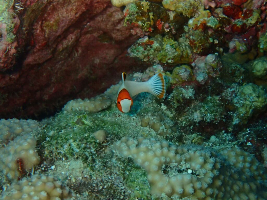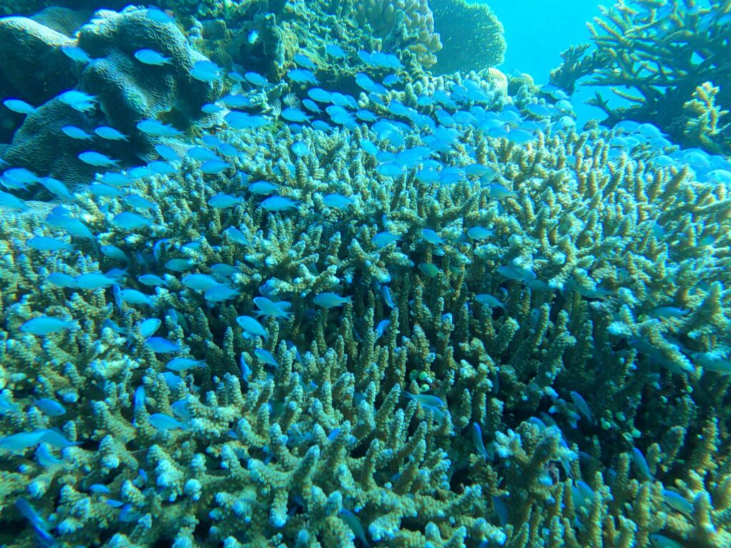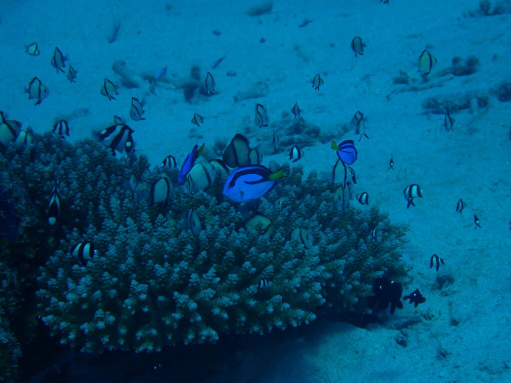ナンヨウハギ、ミスジリュウキュウスズメダイ、フタスジリュウキュウスズメダイ、ミツボシクロスズメダイ