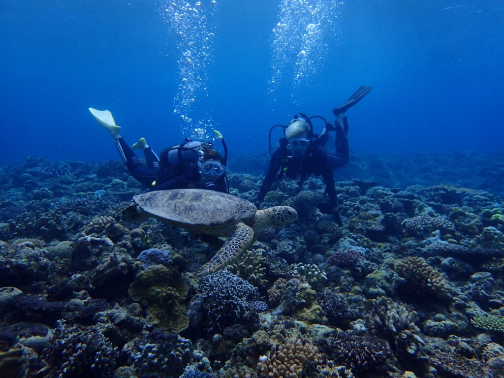 ウミガメやチンアナゴ、デバスズメダイなどなど観察してきましたよ👀💕