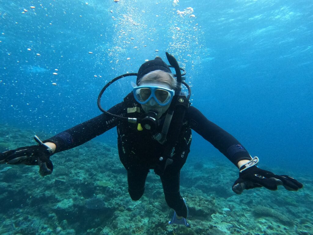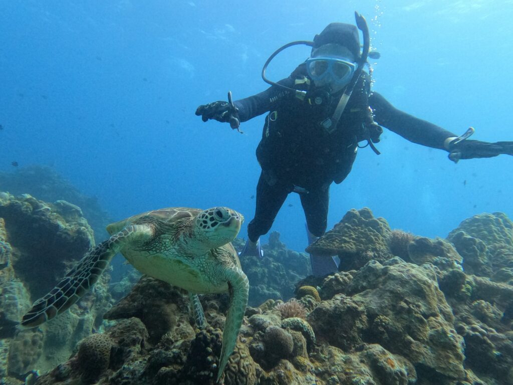 水面はざぶざぶですが水中は平和なものです。