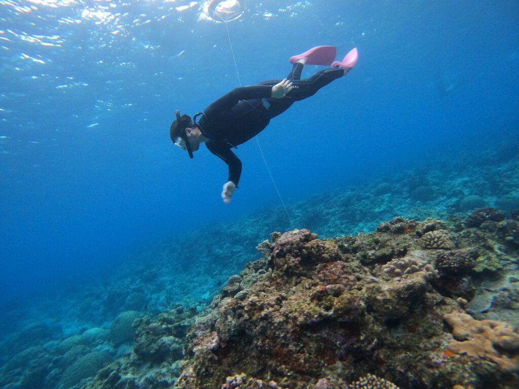今日はスキンダイビングとホエールスイム!