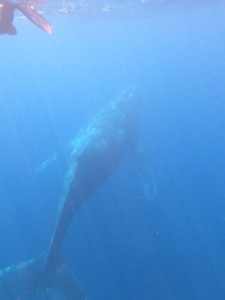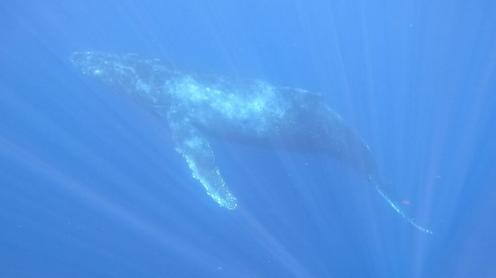 大人1頭のザトウクジラが水中でピタッと停止している姿をじっくり観察できましたよ👏