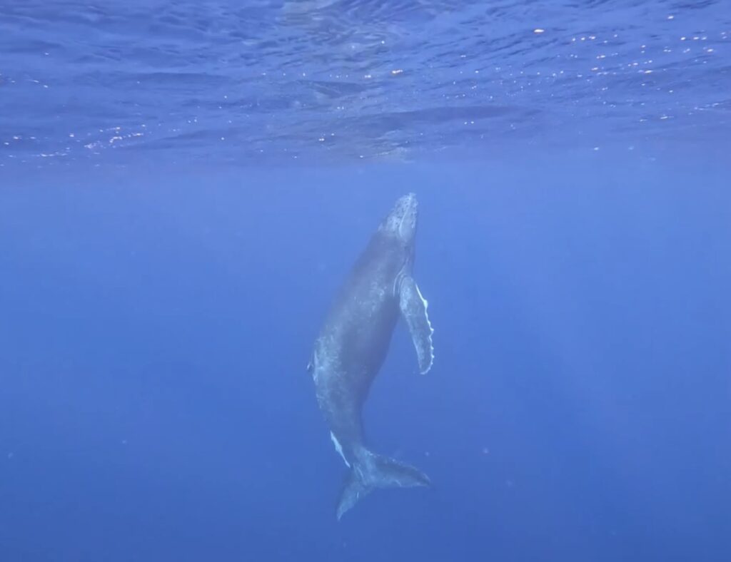 水面から見せる大きな背中、そして静かに潜っていく際のダイナミックな尾びれ。その圧倒的な存在感に、ゲストの皆さんもスタッフも思わず息を呑みました。