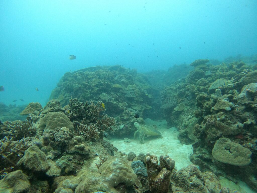 ナガンヌ島のアオウミガメには警戒されて近寄れませんでしたが、神山島のカメはリラックスしてぐでーっとしてました。