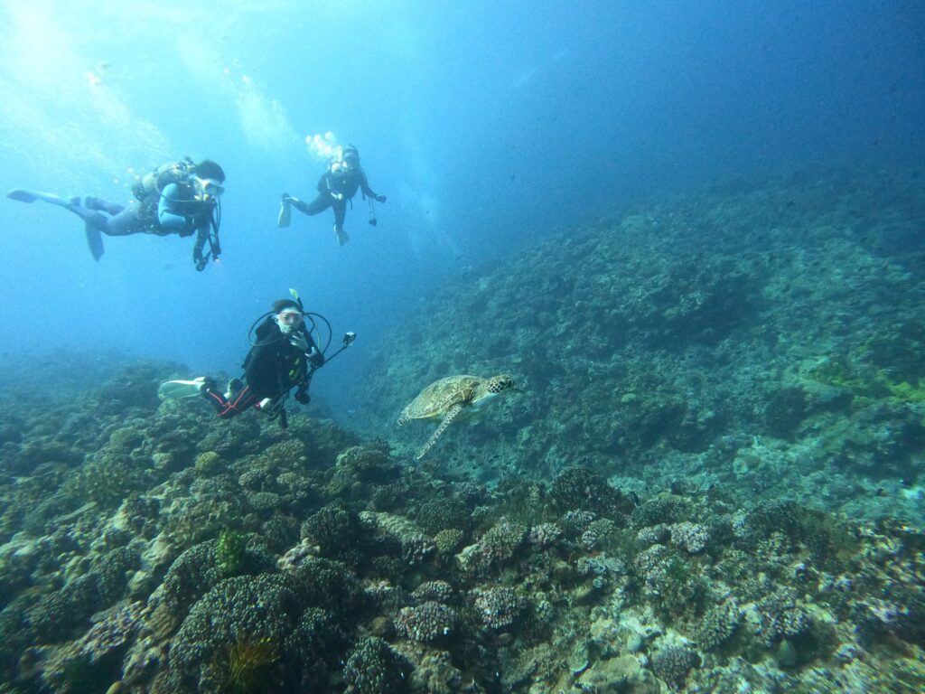 かっこよく泳ぐホワイトチップシャーク🦈ウミガメやコブシメなどなど観察です👀