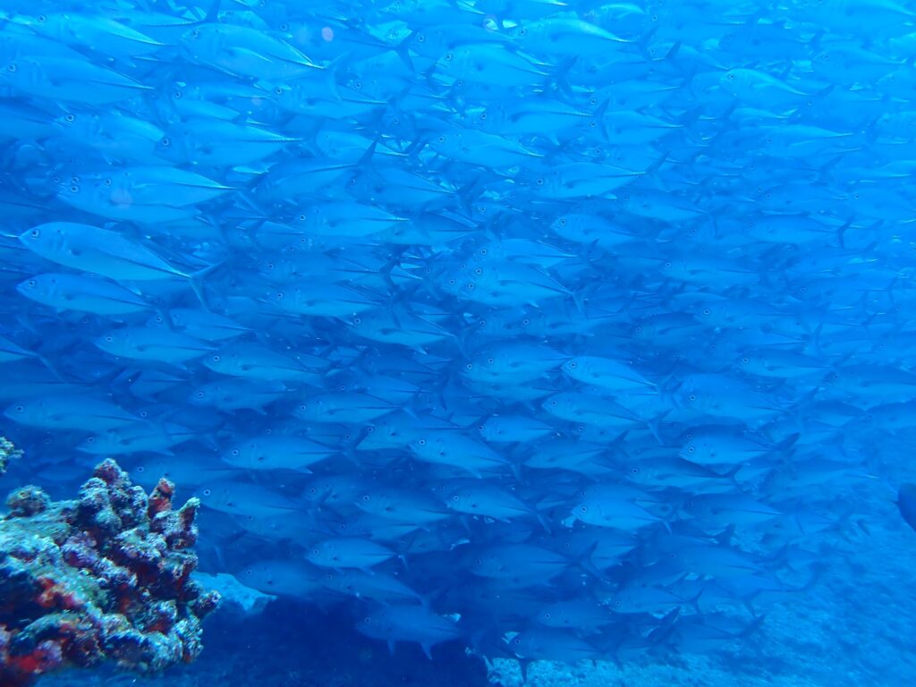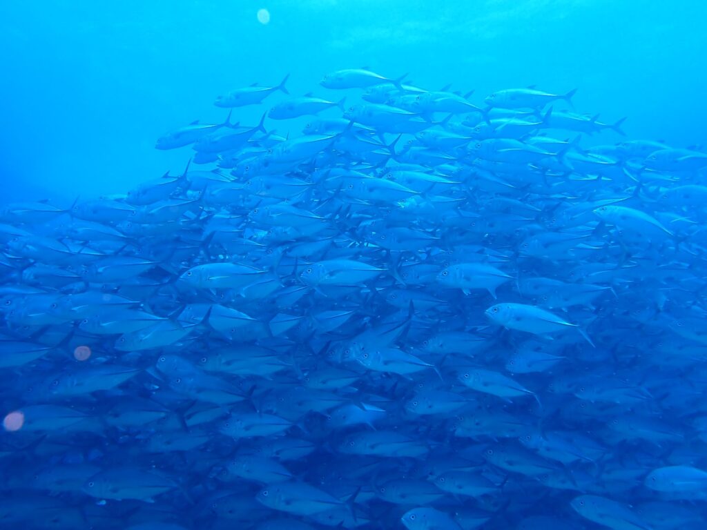 目の前を埋め尽くすギンガメアジの玉は、まさに圧巻の一言です。