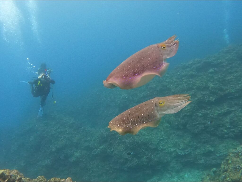 この時期がシーズンのコブシメもまじかで観察できましたよ🦑体色が変わる様子も不思議です!
