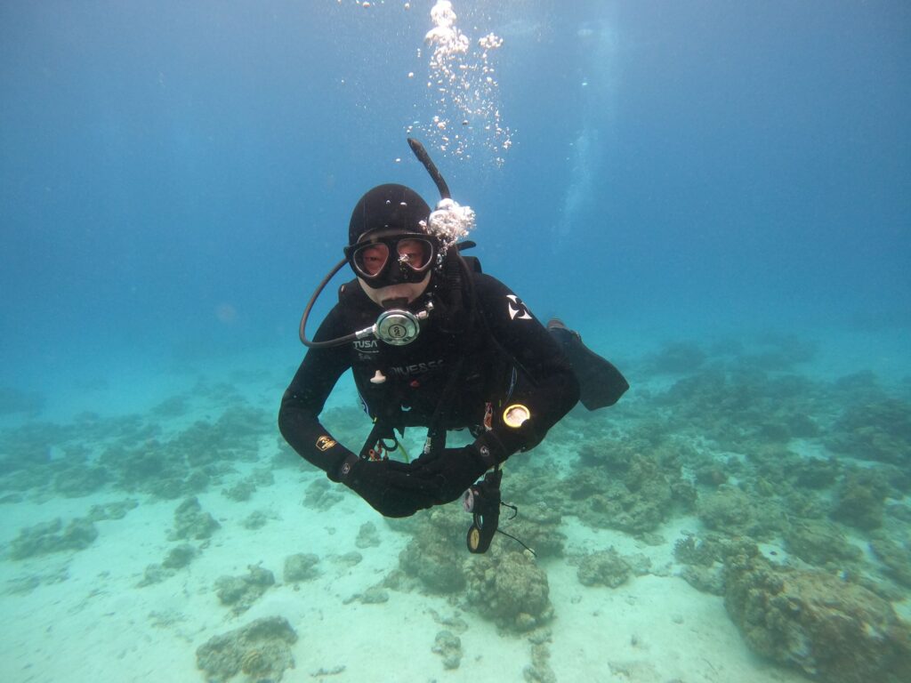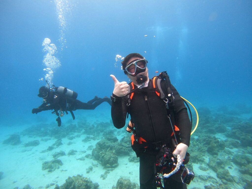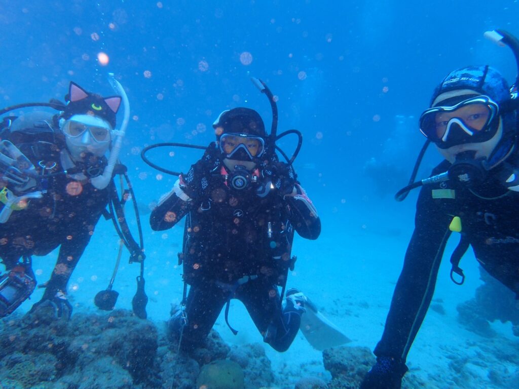 あいにくの曇空でしたが、水中は「アオ」!まさしく慶良間ブルーですね💗