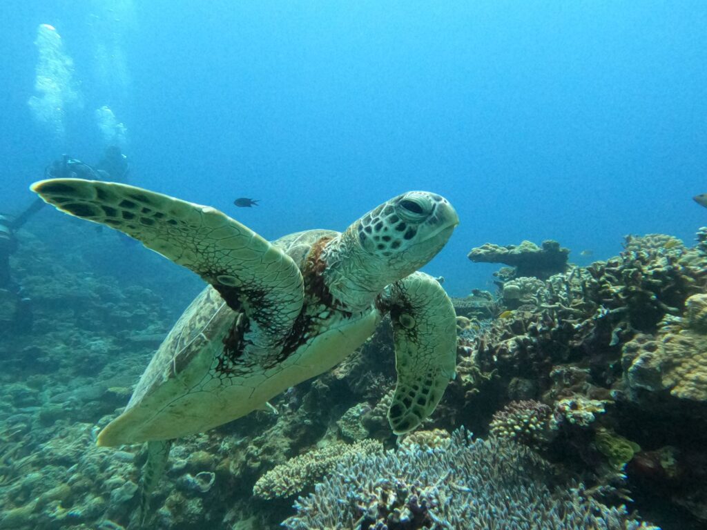 アオウミガメがリラックス状態でおよいでいました🐢